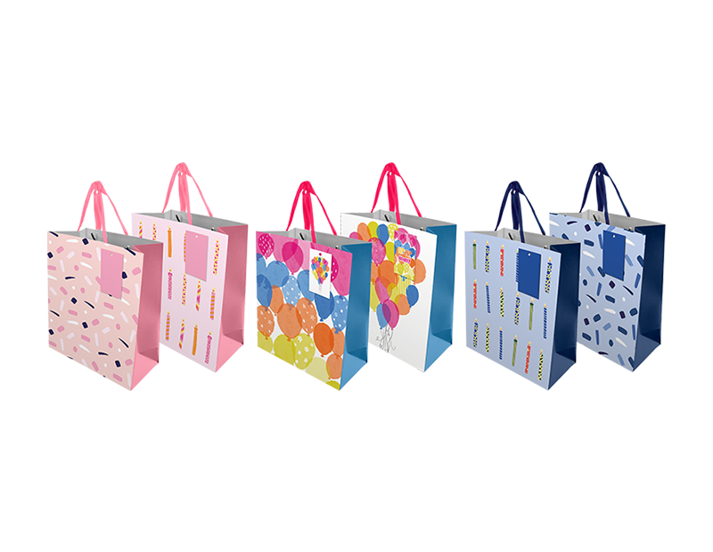 Each bag is printed with two complementary patterns one on either side. Featuring an attached woven handle and printed swing tag these bags are ideal for medium to small-sized gifts.