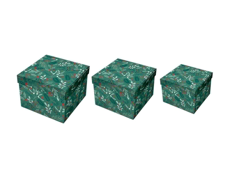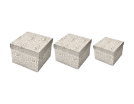 Each set comes with one Large box (H11 x W20.5cm), one Medium box (H10 x W18cm), and one Small box (H9 x W16cm). Boxes come nestled together with their own lids.