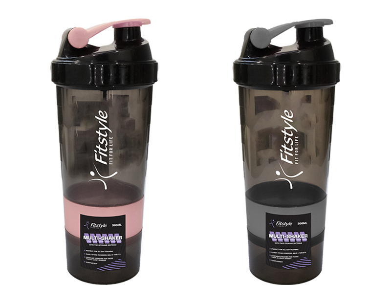 This Protein Multi-shaker has a capacity of 500ml with a strainer insert and secure screw top lid to prevent leaks. Ideal for taking to the gym.