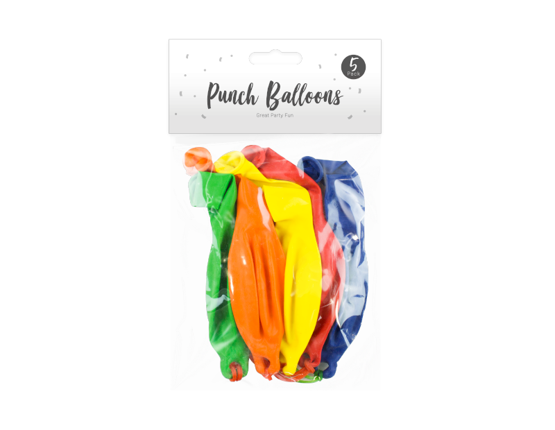 This pack of Punch Balloons contains five assorted coloured balloons that have an attached strong piece of elastic that allows the balloon to be punched and bounced.