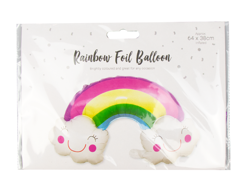 This Rainbow Foil Balloon has an inflated size of 64 x 38cm and features bright colours with a sturdy foil construction.