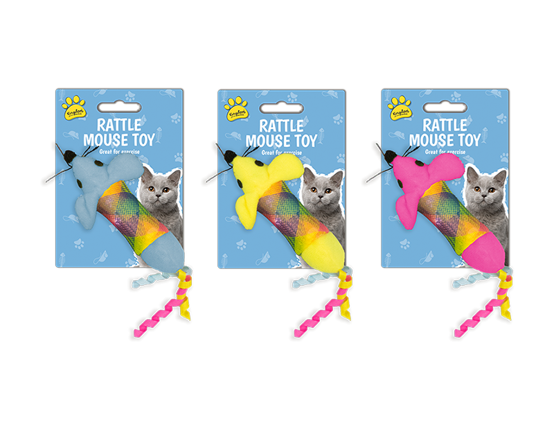 The rattling noise is sure to grab feline attention, each mouse has a face and whiskers for added interest. Hide around the house for cats to discover and play with or throw it around to give a cat more exercise chasing the mouse across the floor.