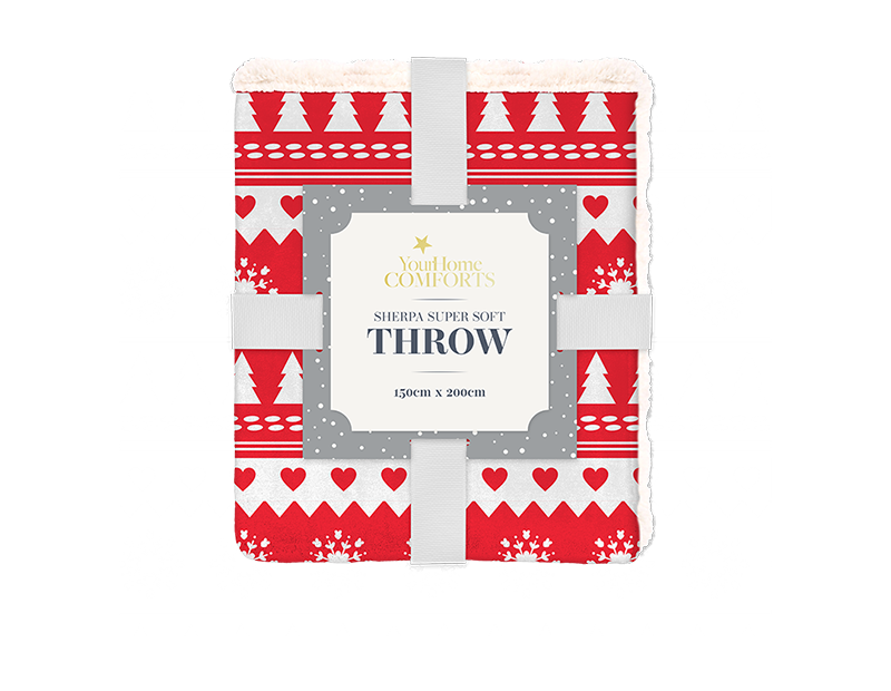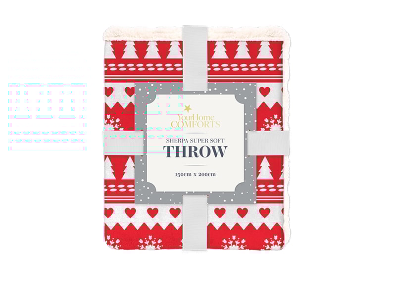 Red Christmas printed throw with a sherpa backing. Cosy warm and the perfect home essential for the seasonal period. Each throw measures 150x200cm and is machine washable.