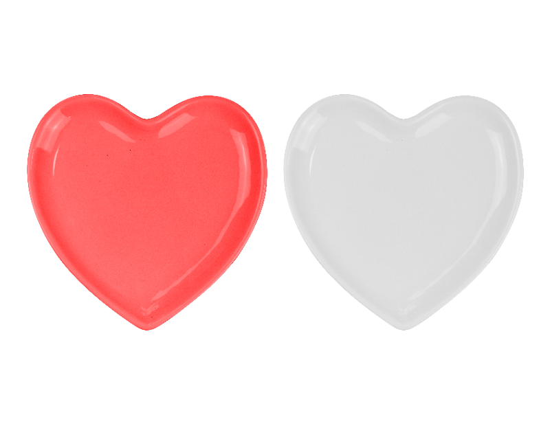 Each plate measures 21.5cm in width and is made from durable ceramic material. Each plate is available in either Red or white.