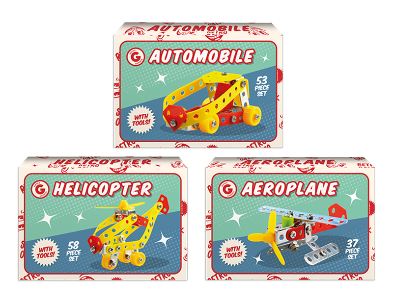 These Retro model vehicles are a great gift or gadget for the whole family. Each small box contains dismantled vehicles accompanied with tools to put the pieces together.