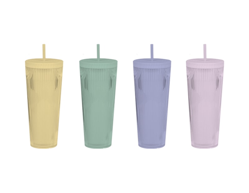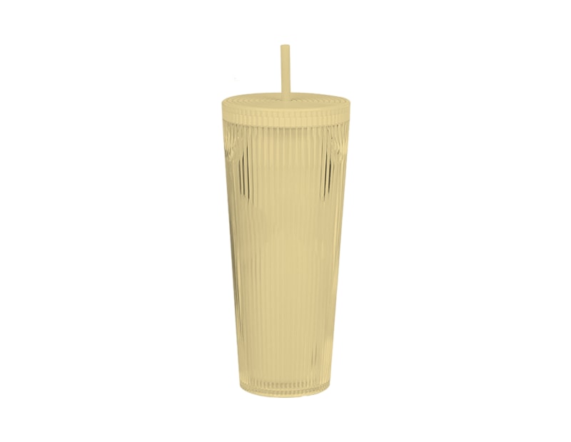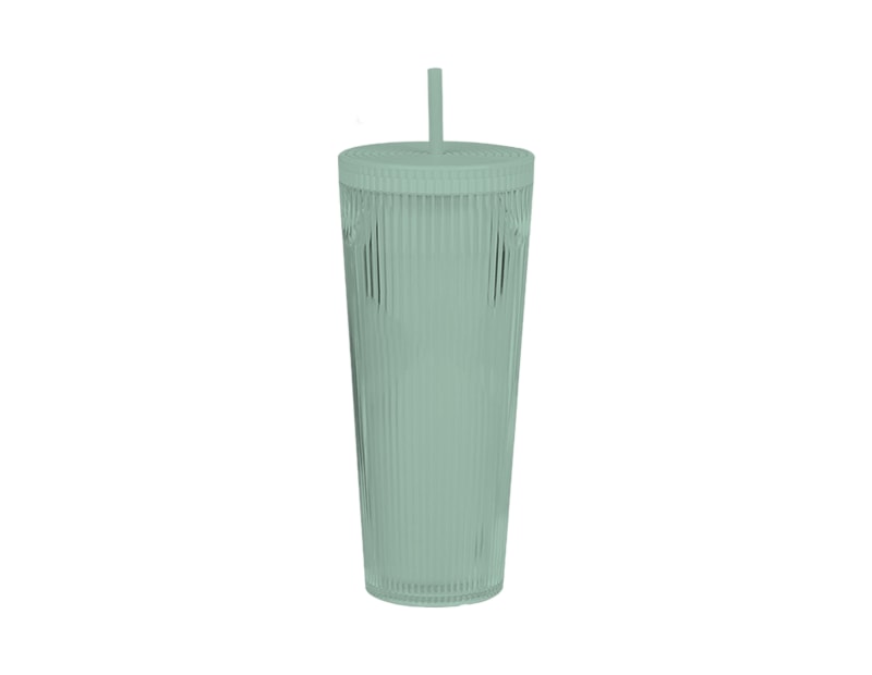 Ribbed Glass Cup With Straw & Bamboo Lid 450ml