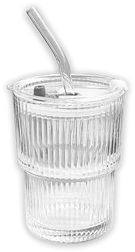 Ribbed Glass Cup With Straw & Lid 360ml