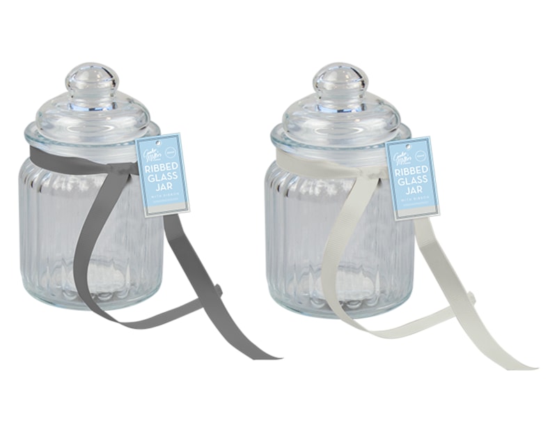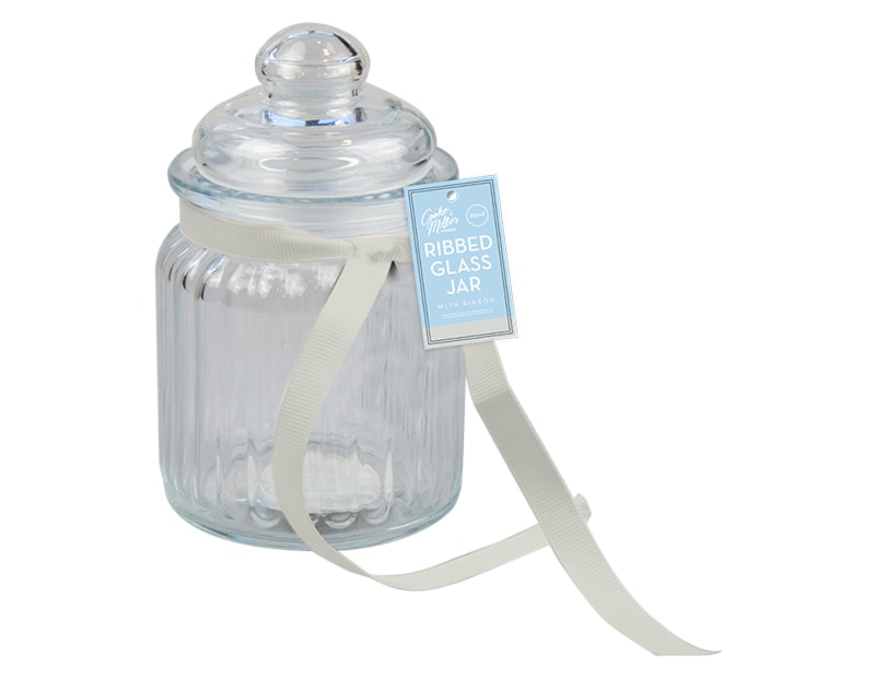Wholesale Ribbed Glass Jar With Cork Lid 760ML