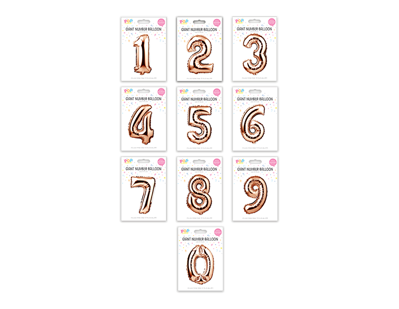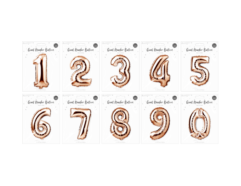 Each number balloon features a rose gold colour and can be filled with air or helium.