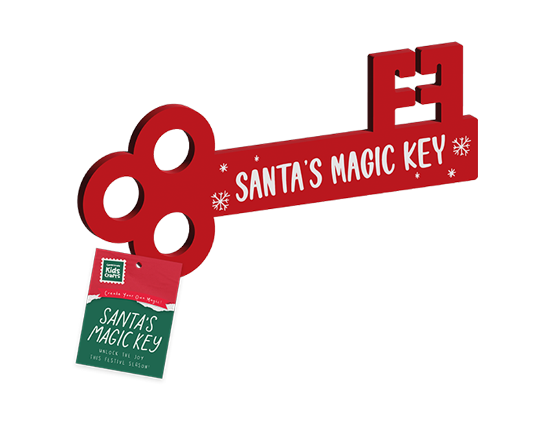 The wooden key measures 22.5cm x 9cm x 1cm and features the words 'Santa's Magic Key'.