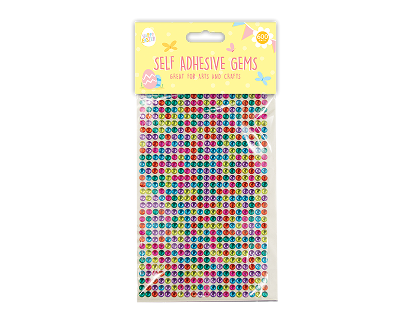 Each pack comes with 600 multicoloured gems, each gem is self-adhesive and can be placed on a variety of products such as cards, easter bonnets and much more.