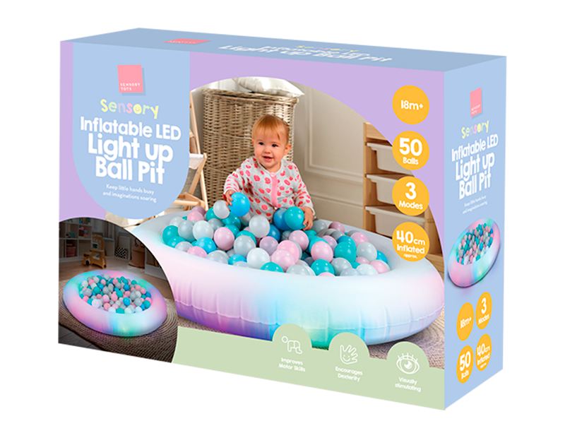 Explore, discover and learn! Turn playtime into a magical sensory adventure with our Inflatable LED Light up Ball Pit!