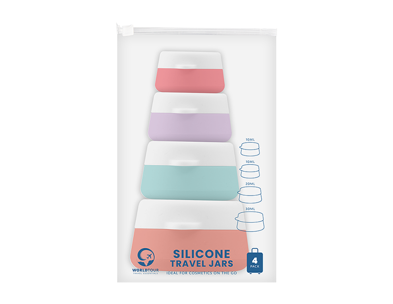 These travel jars are ideal for taking cosmetics and skincare essentials on the go. Each jar has a secure clip shut lid and features a silicone construction to make it easier to remove product from, and much easier to clean after use.