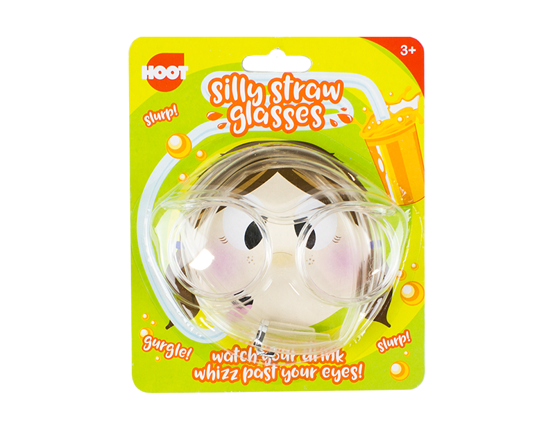 This pair of Silly Straw Glasses is suitable for children over 3 years old and features a long, clear bendy straw that attaches to a pair of clear glasses.