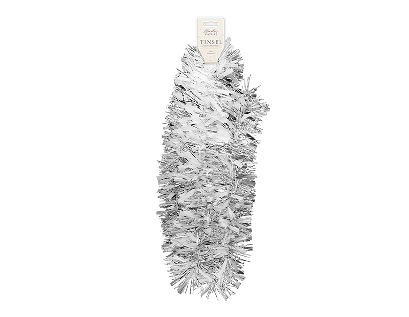 This Silver Christmas Tinsel is constructed around an internal piece of steel wire for added durability and has an overall length of 2 metres.