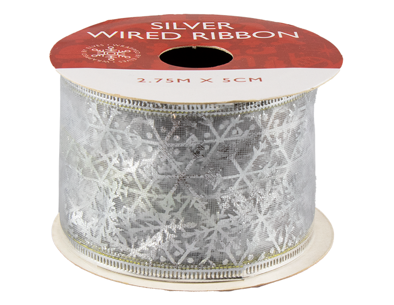Christmas Wired Ribbon Silver 5cm x 2.75m CDU