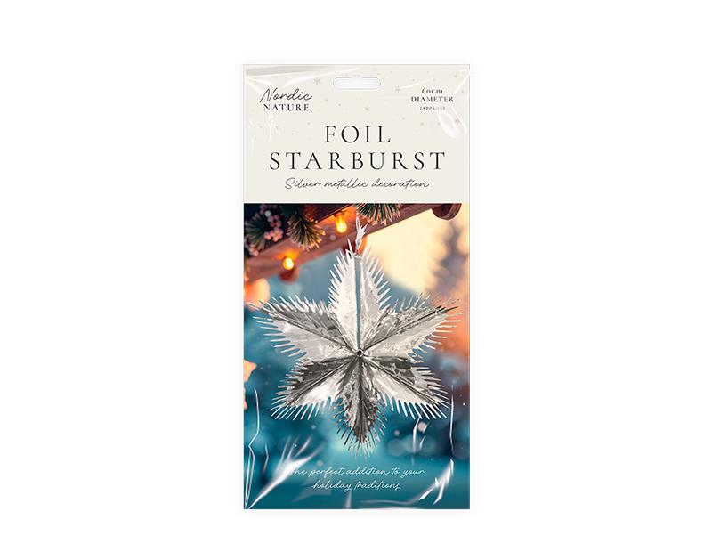 This Silver Foil Starburst is constructed from metallic foil and can be opened out to create a stunning 3D Christmas decoration.