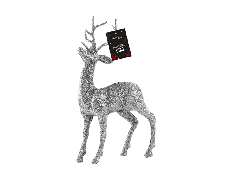 This Silver Glittered Christmas Stag would make a worthy addition to any festive decorations and features a complete glitter covering that is visually stunning.
