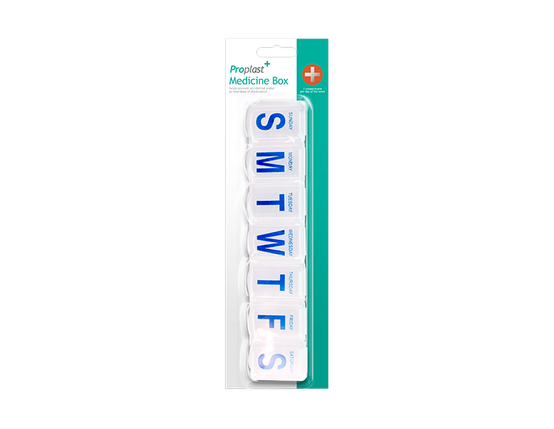 This slim Seven Day Pill Box is ideal for storing medication and helps to prevent accidental underdosing or overdosing.