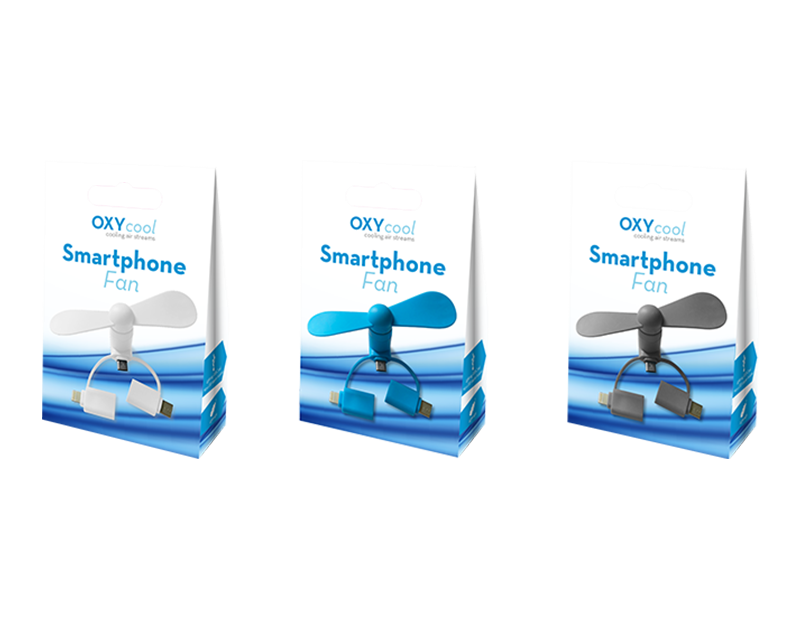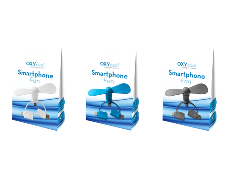 A powered smartphone fan that plugs into a phone charging port. Features lightning, USB-C, and micro USB adapters, making it compatible with a wide range of phones.