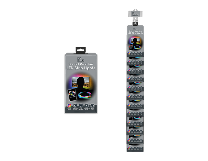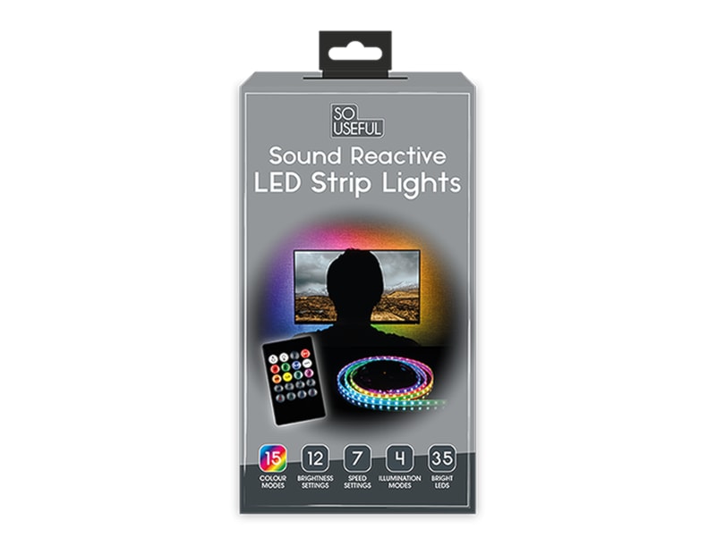 Ideal for parties, events, or even movie nights or just placed around the TV. Each strip of lights has an adhesive backing for easy placement. They also come with a sensitive built-in mic, that will pulsate and change colours when picking up sound waves within the environment.