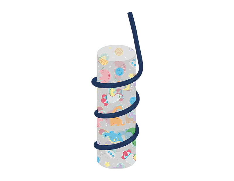 These tumblers are ideal tableware for kids. Each cup measures H16.5cm x 6cm dia and comes in a fun space dinosaur print with a transparent blue twirly straw that wraps around the outside of the tumbler. Each print features cute dinosaurs, spaceships, moons and stars.