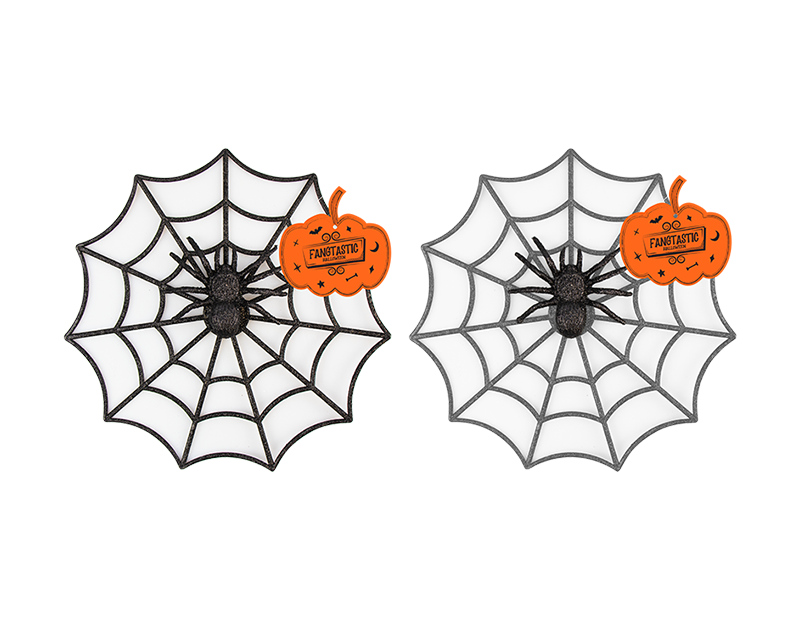 This Spider Web Decoration will make a fun (and not too spooky) addition to any Halloween party. The decoration consists of a black spider mounted onto a solid silver or black spider web that measures 29cm in diameter.