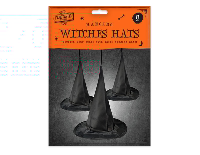 These witch hats are sure to make fun and spooky decorations for halloween parties and events. Each pack comes with eight individual hats.