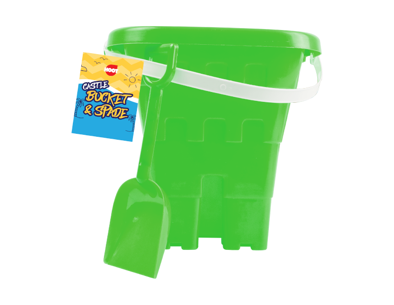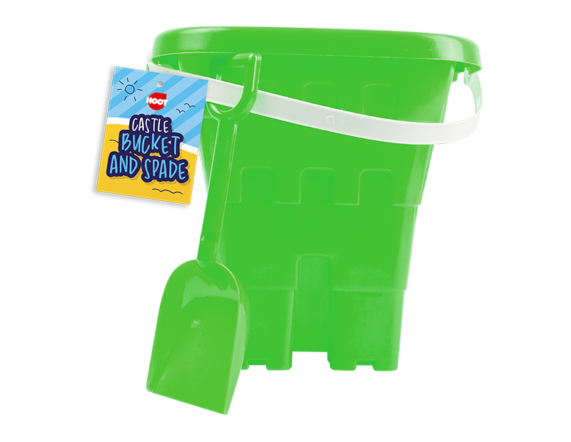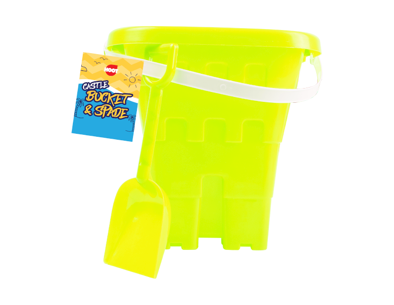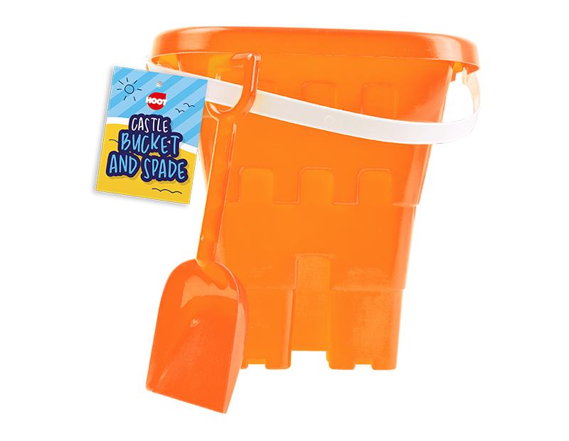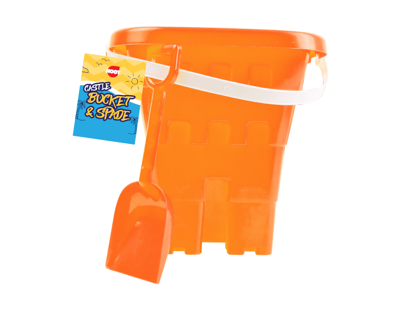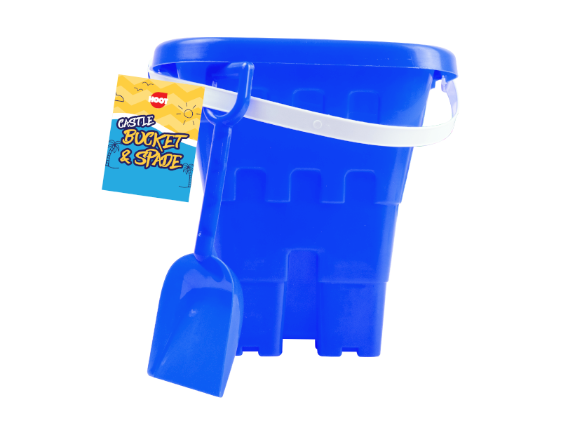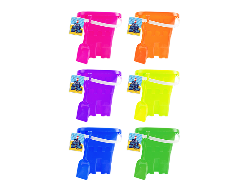 These plastic Bucket & Spade Sets are bright and colourful and have been designed in the shape of a square castle. Ideal for days at the beach, this bucket can be filled with sand and when tipped upside down and removed, will create a castle shaped sculpture.