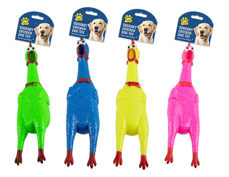 These fun Squeaky Chicken Dog Toys are made from durable plastic that is safe and non- toxic for pets.