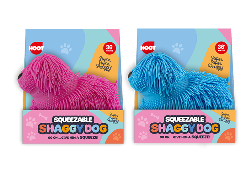 Each squeezable dog measures H19 x W14 x D21.5cm approx and features a soft TPR construction with painted facial features and fun shaggy texture. Ideal for use as a sensory toy, or to relieve some stress.