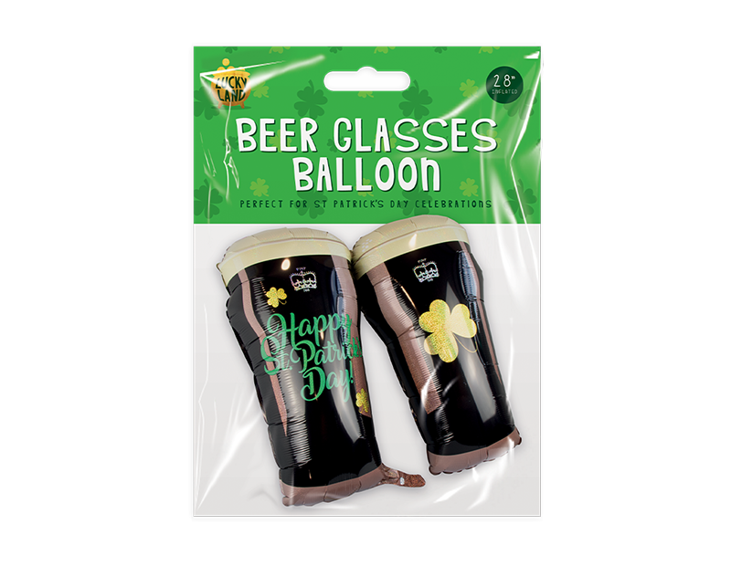 Beer glasses balloons, perfect for the St Patrick's day celebrations. Each pack contains an assortment of two glasses that measures 28" when inflated. Includes thick paper straw to blow up.