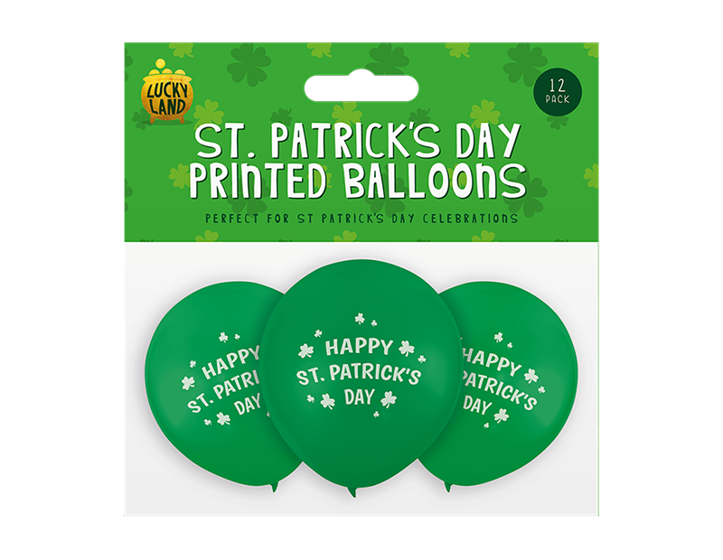 The perfect decoration for St Patricks Day. These printed balloons measure 9" when inflated and contain x12 balloons in the traditional Irish green colour.