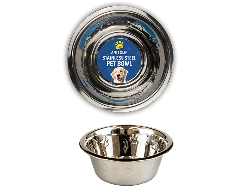 With a 16.5cm diameter, this is a slightly smaller pet bowl, but is is also deep (6cm) so has plenty of capacity. Made from stainless steel and embossed with a paw and bones motif, it's an ideal size for small and medium sized dogs, but would work just as well for larger cats.
