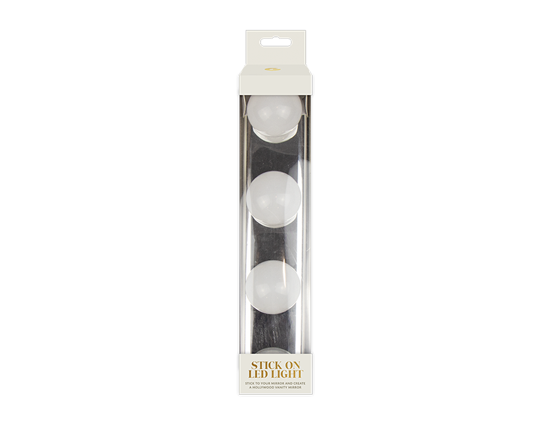 Stick on LED bar light perfect for sticking to mirrors to create a hollywood style vanity mirror. Each stick-on LED light bar has four light bulbs that will show a bright white light. The LED light can be stuck on using the two suction cups provided.