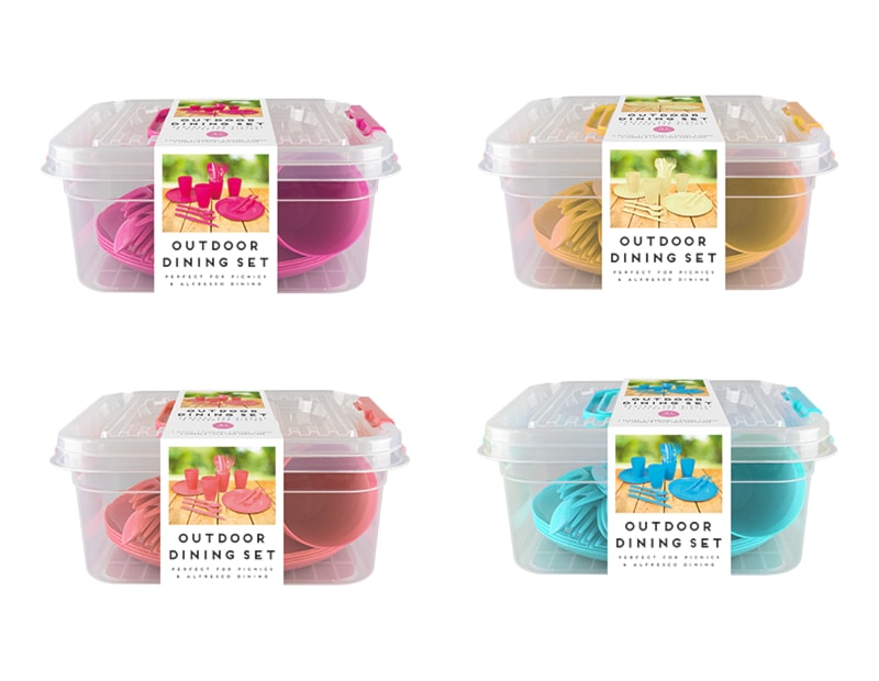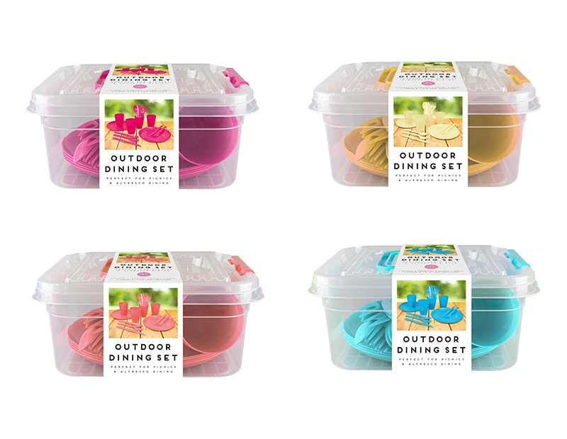 This outdoor summer dining set comes in a handy clip lock container to take on the go. Perfect for picnics, beach trips of alfresco lunches.