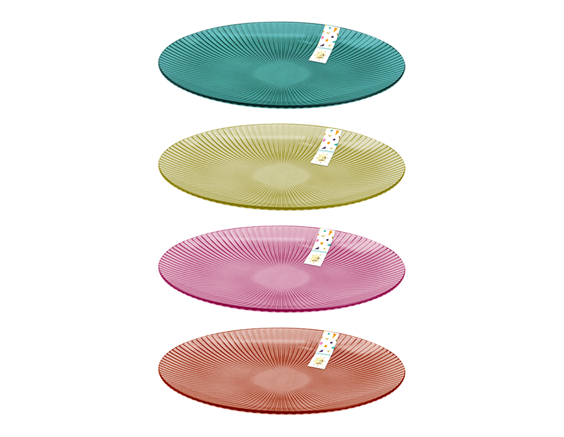 These summer plastic plates are a great product for summer events. Each plate is constructed from ribbed plastic which gives it a retro feel. The bright and bold colours give the plates a modern and stylish feel.