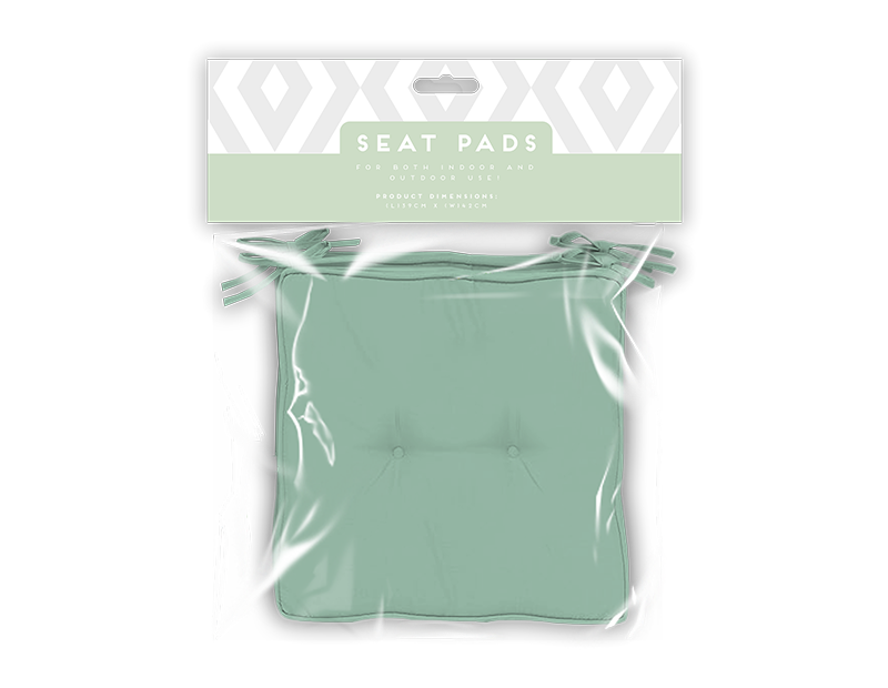 Each pack comes with two 2 button seat pads in a sage green colour, measuring L41 x W41 x D2cm each. The pads can be tied to any chair of choice using the straps for security and comfort.