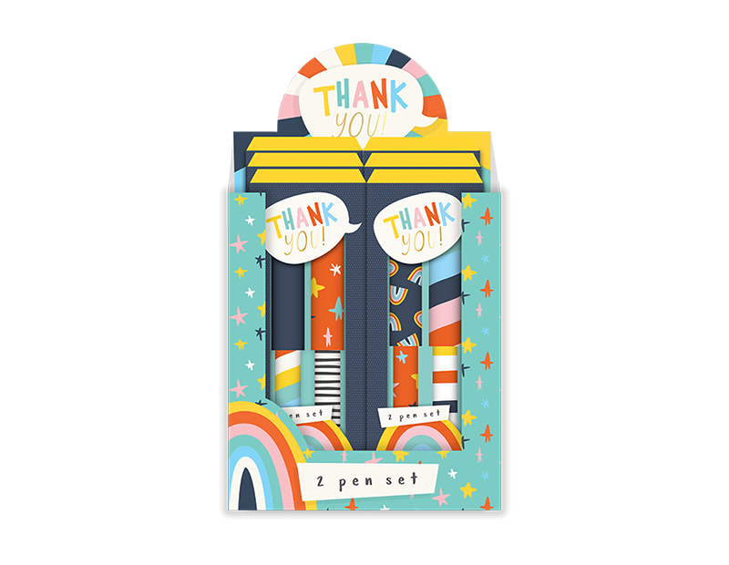Each set comes with two individual ballpoint pens, both with a full wrap print design, and a metal clip attached to the lid to secure to shirt pockets. Pens write in black ink.