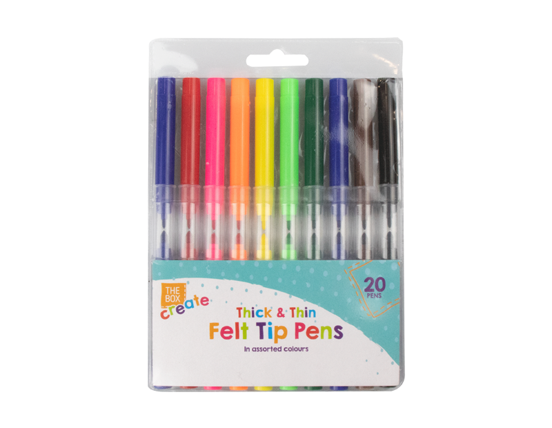 Thick & Thin Felt Tip Pens - 20 Pack