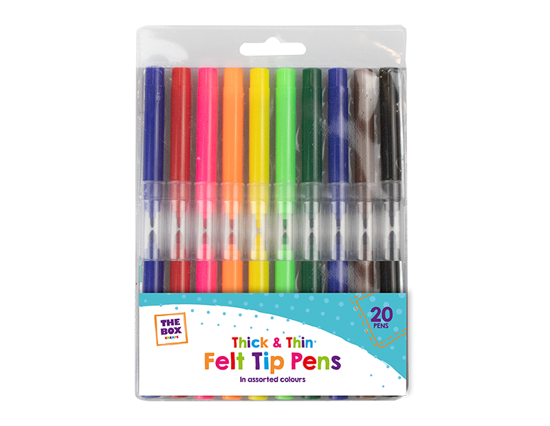 Thick & Thin Felt Tip Pens - 20 Pack