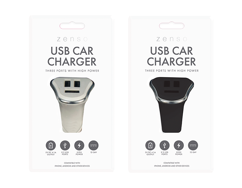 This USB car charger has three USB ports that will provide high power charging for multiple devices. Ideal for long car journeys, holidays and camping.