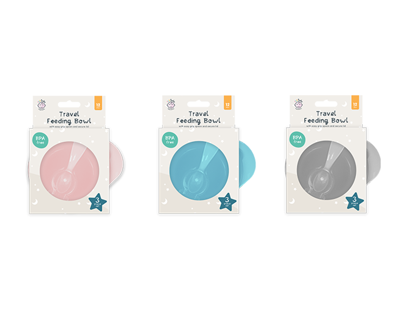Three piece travel feeding bowl and spoon set with an easy-grip spoon and secure lid. Constructed from BPA-free plastic and suitable from ages 12 months +.