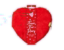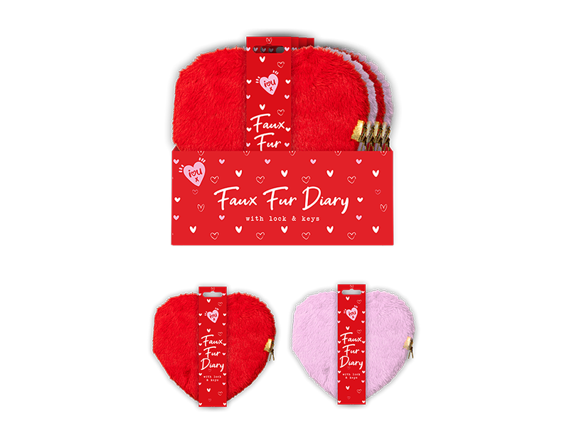 Each diary contains 80 pages of blank paper, is heart shaped with a soft faux fur cover, and comes with a lock and two keys.