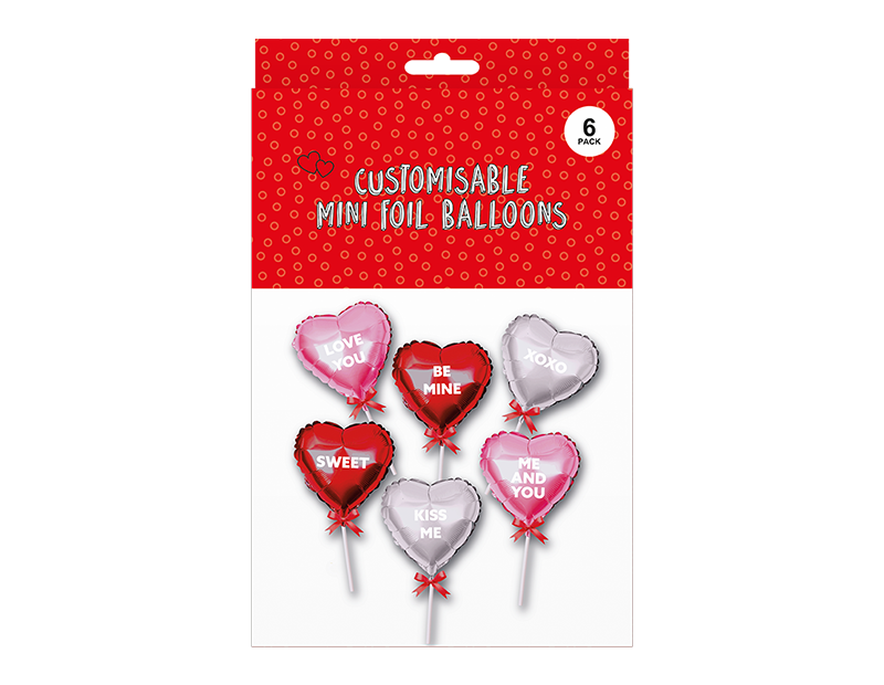 Valentine's Customisable Mini Foil Balloons 6pk