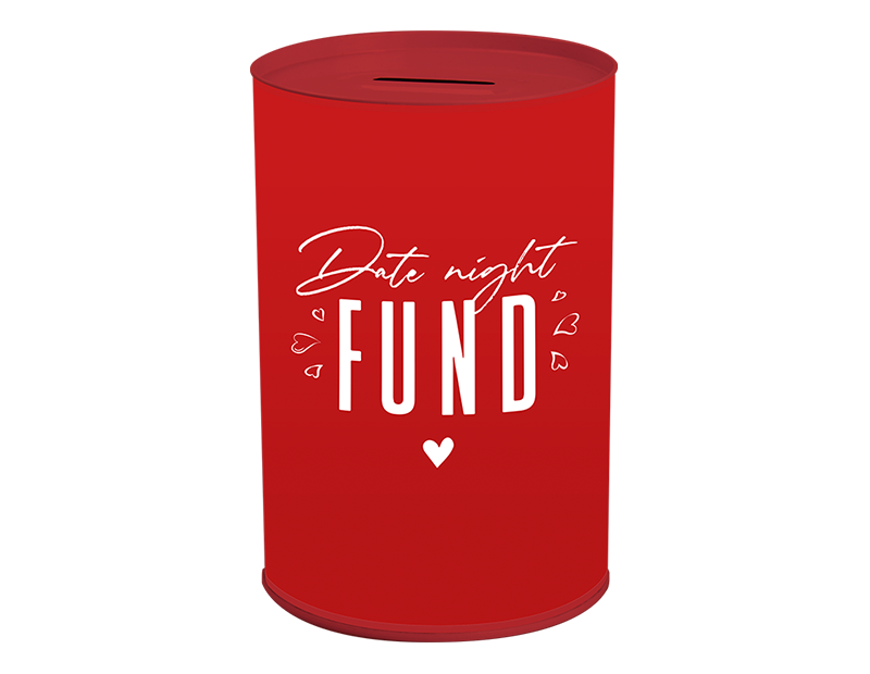 This delightful Valentine-themed money tin is the perfect way to save pennies for a romantic getaway or date night. This ruby red money tin features a charming greeting that reads " Date night Fund".