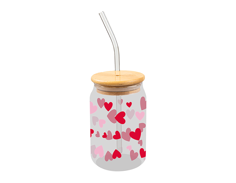 Valentine's Glass Jar and Straw With Bamboo Lid
