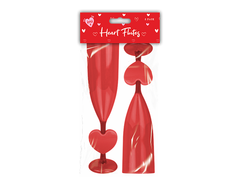 Romantic red champagne flutes, perfect for a romantic evening. Each Heart flute features a plastic heart stand.
