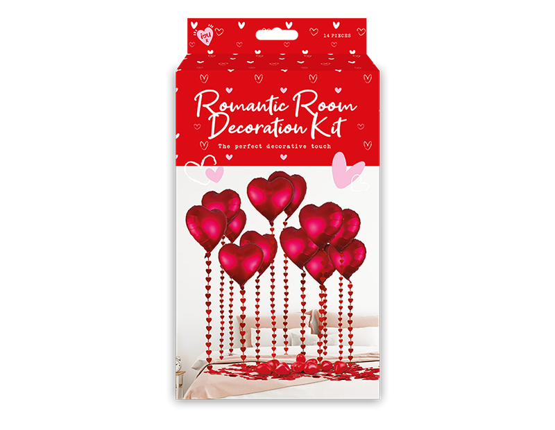Each set includes pieces including 15 x red foil heart balloons (18") and 15 x red latex heart balloons (5"), and 15 x heart balloon tails as well as heart-shaped confetti and one inflating straw.
