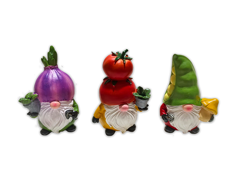 Each ornament measures approx H15.5 x W7 x D7cm, and are made of durable resin painted with bright colours, and shaped to resemble popular garden vegetables.